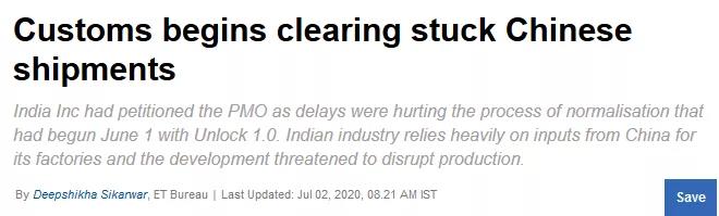 终于扛不住了,印度海关开始清关滞留在港口的中国货物!